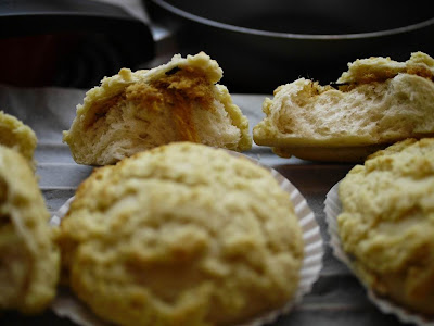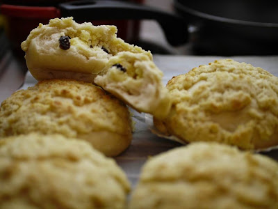 以前一直以為菠蘿麵包需要什麼特殊的材料跟道具,做工一定很繁複,所以遲遲不敢下手。很悲哀的是最近的我,什麼不多,時間最多(這種景氣我要何時才能在這排外的小英國找到工作啊~淚~),加上看周老師詳細的解說,覺得好像還不是太難,前些日子就來試做看看。配方我這裡就不贅述了,周老師網站上介紹的粉清楚。