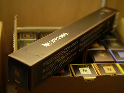 上週試完一輪12種口味後,這週一早上速速下訂。速度有夠快,隔天中午就送到了,因為Nespresso用的是FedEx不是屢屢失誤的英國Royal Mail。不過拜我家樓下那不中用的電鈴所賜,即使我就坐在窗邊,我還是又miss掉了,只好請FedEx星期三再送。