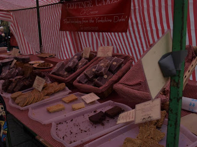 應該是場地有限,有錢大家輪流賺,這週五到市中心發現市集又換了一批。這回沒有什麼外來品,多數都是約克地區當地自製自銷的食物。買了一個年輕美眉顧攤的home-made Brownie,每塊£1,3塊£2.5,有黑白巧克力兩種口味。切得大小不是很一致,我買了2黑1白,美眉親切的多給我半塊黑布朗尼。由於只擺攤到週六,回家馬上嚐嚐看好不好吃,好吃的話,這麼親切的態度一定馬上隔天要再去交關一下的。