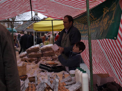 上圖的小弟弟超級可愛,幫爸爸賣起司和雞蛋,會招呼客人、會端試吃給路人還會幫客人裝東西。我想這些起司(包括旁邊的有機雞蛋、牛奶)應該是老闆家裡自製自售,味道濃郁,果然是在地的好滋味。這個可愛的小弟應該幫爸爸多拉了不少生意吧!聖誕節,就是這麼個適合家庭的節日啊!