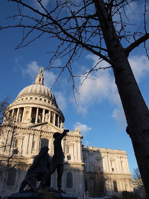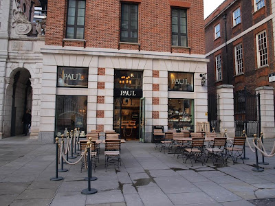 行前Tony的韓國學長勸他不需要進西敏寺看一堆古人的墓碑,到了現場門票貴得令人咋舌,Tony也不願意一個人進去,所以我們只有在外面拍照。轉移陣地到學長極力向Tony推荐的聖保羅大教堂,地鐵站沒找好提前出站,走了十多分鐘才看到教堂。也因為這樣,讓我在沿路Fleet Street上發現了一家Paul,後來Tony進去教堂內參觀時,我剛好可以跑到Paul去採買。因為擔心距晚上搭車回家時間太長,不敢買需要冷藏的東西,小姐很好心,在我想要點草莓塔的時候制止我,說這個可能會碰壞,不要買比較好。但草莓千層派放在櫃子裡好誘人,我跟小姐說我等會就吃她才讓我買XD 不過結帳時小姐才跟我說他們在Covent Garden那裡也有分店...當場很想請小姐放下手中的東西,跟她說那我晚上再去那邊買好了
